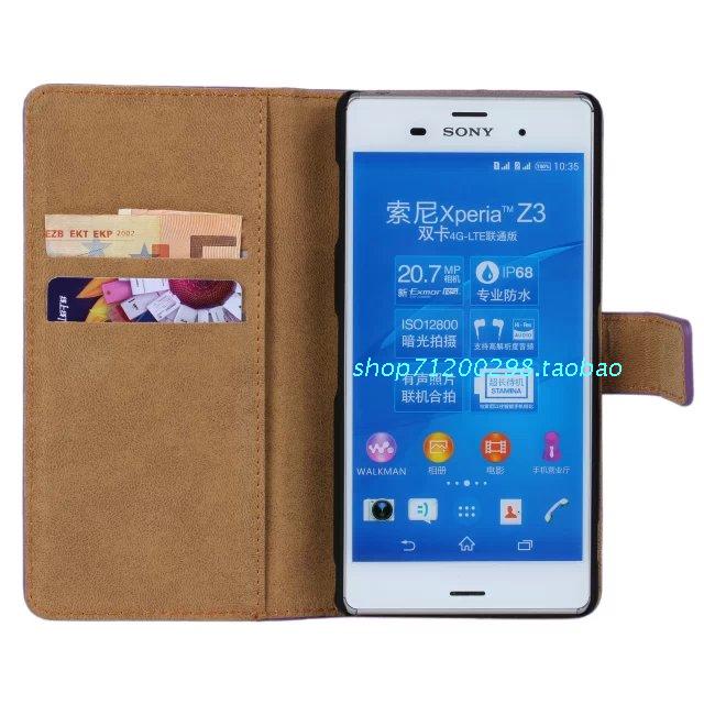 索尼Xperia Z3/L55T 真皮二層皮 平紋手機套 皮套 D6603 左右開翻 支架插卡 錢包款 保護套外殼 批發