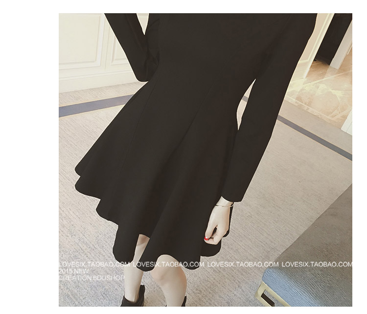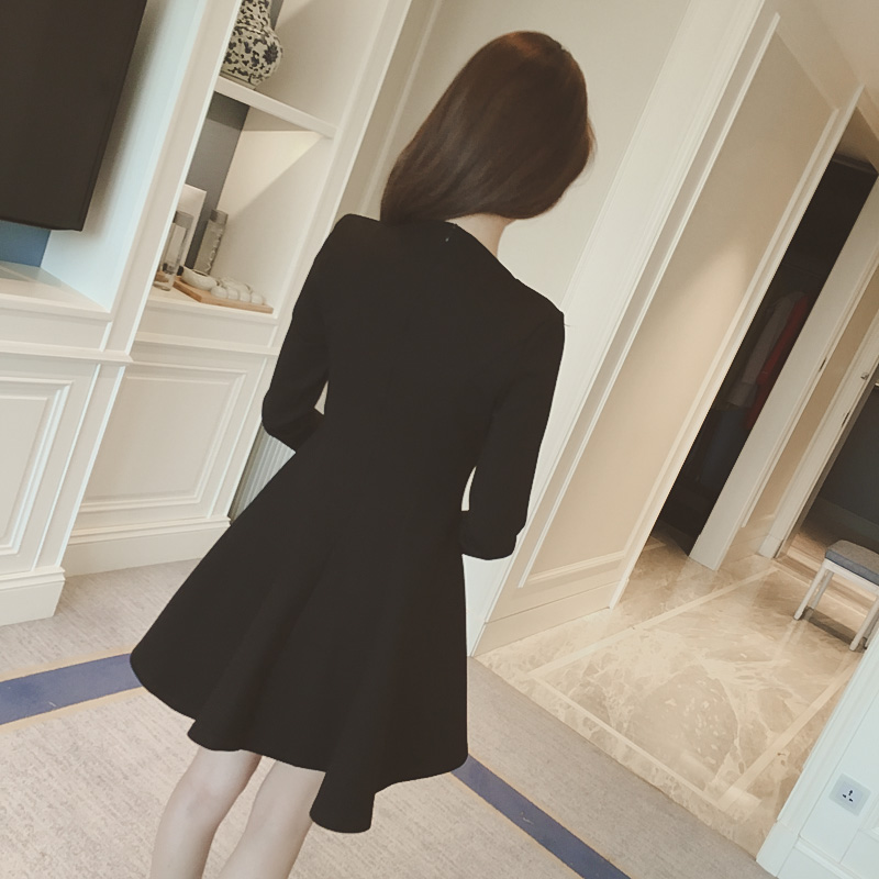 連衣裙,修身連衣裙,赫本小黑裙,黑裙,秋裝連衣裙,秋裙,冬裙,韓國東大門代購秋裝,2017新款女裝,收腰,修身,顯瘦,黑色,裙子,百搭,長袖連衣裙春秋,打底裙