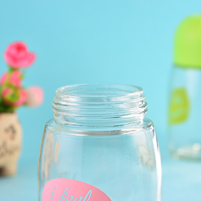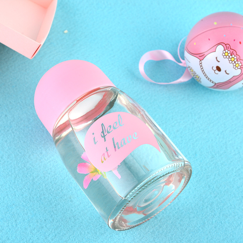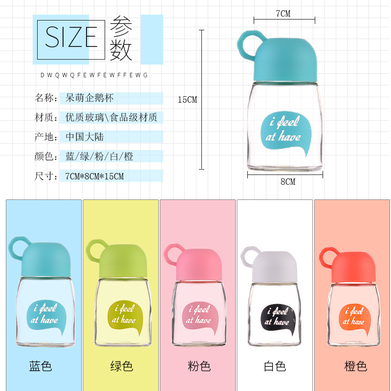 便攜玻璃杯學生卡通可愛簡約字母隨手杯小巧水杯指環扣迷你牛奶杯