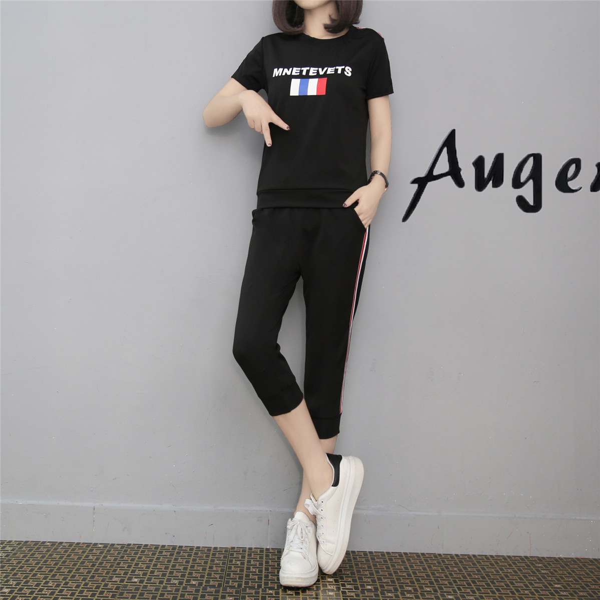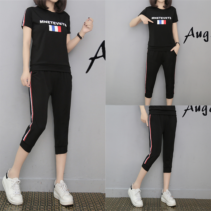 / 運動休閑套裝女夏季潮2017新款春夏短袖七分褲顯瘦時尚跑步兩件套