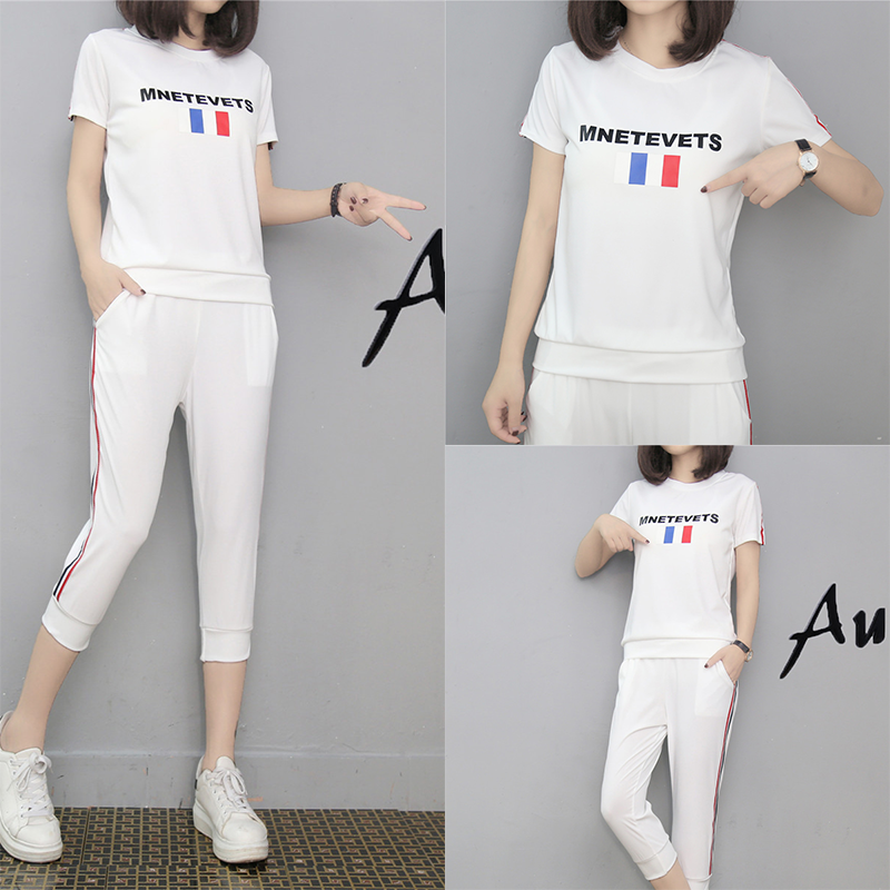 運動休閑套裝女夏季潮2017新款春夏短袖七分褲顯瘦時尚跑步兩件套