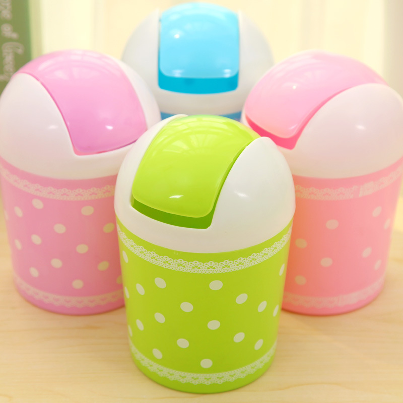 可愛清新蕾絲波點印花桌面收納桶創意時尚迷你觸摸有蓋垃圾桶批量