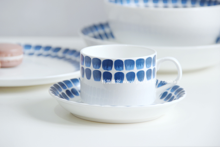 / 北歐風 芬蘭藍點餐盤8寸盤子 日式陶瓷餐具杯碟碗 西餐盤牛排盤子