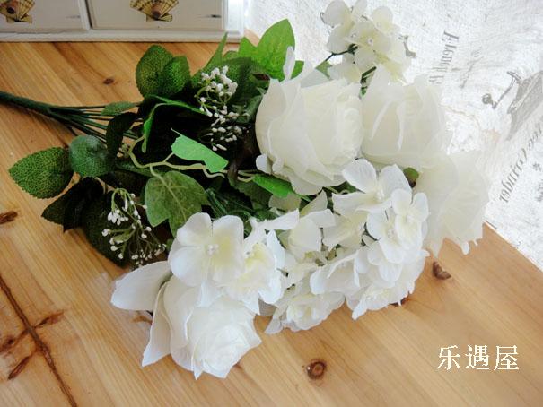 樂遇屋 外貿出口 超美的11頭繡球玫瑰仿真花假花
