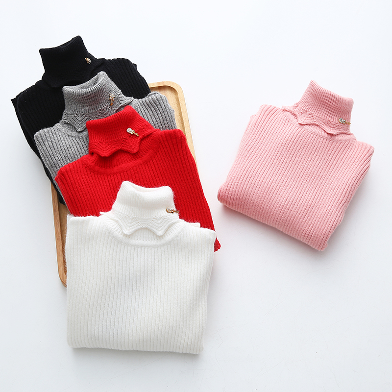 / 兒童半高領毛衣冬裝新款女童童裝螺紋針織加厚打底衫my-0903