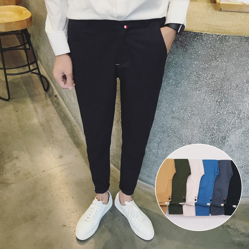 / 秋季新款織帶拼接韓版男士修身小腳錐形休閑褲男褲