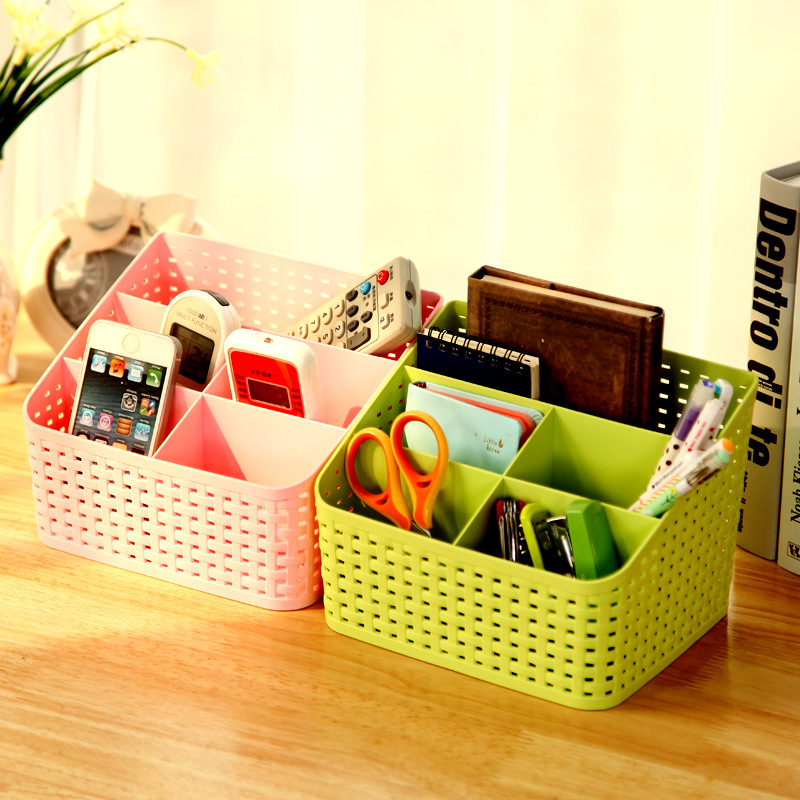 創意仿編織鏤空造型分格化妝品收納盒辦公桌面雜物分格整理盒多色