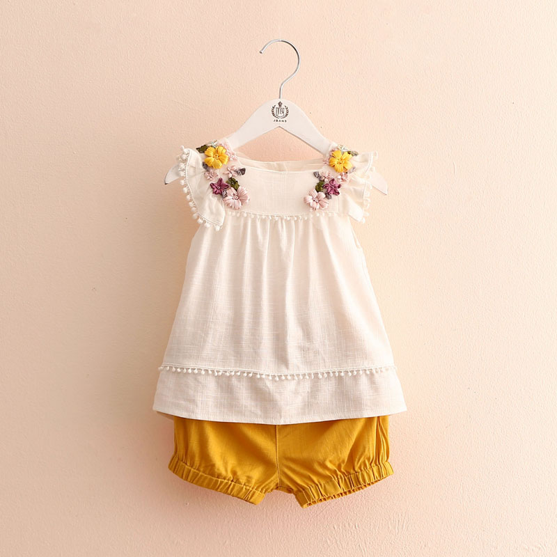 / 寶寶花朵娃娃衫套裝 夏裝新款女童童裝 兒童短褲子潮tz-2857