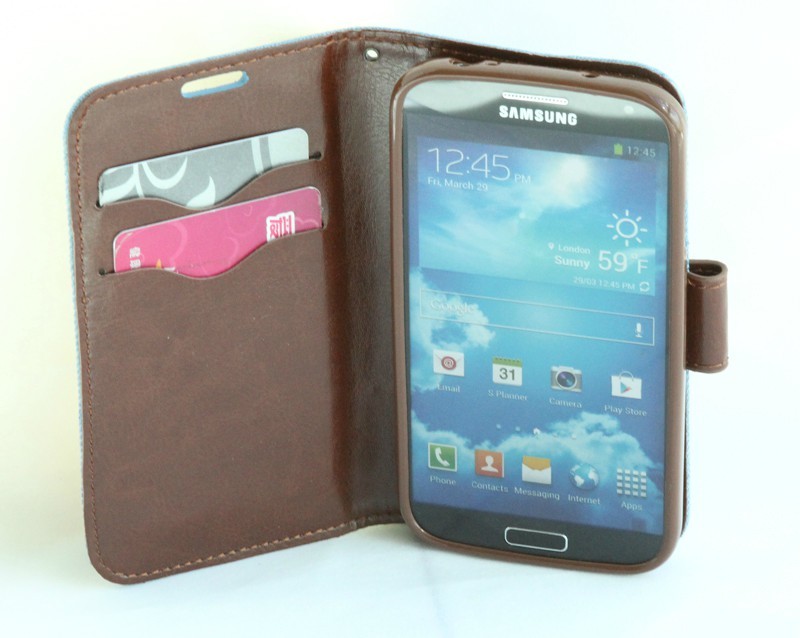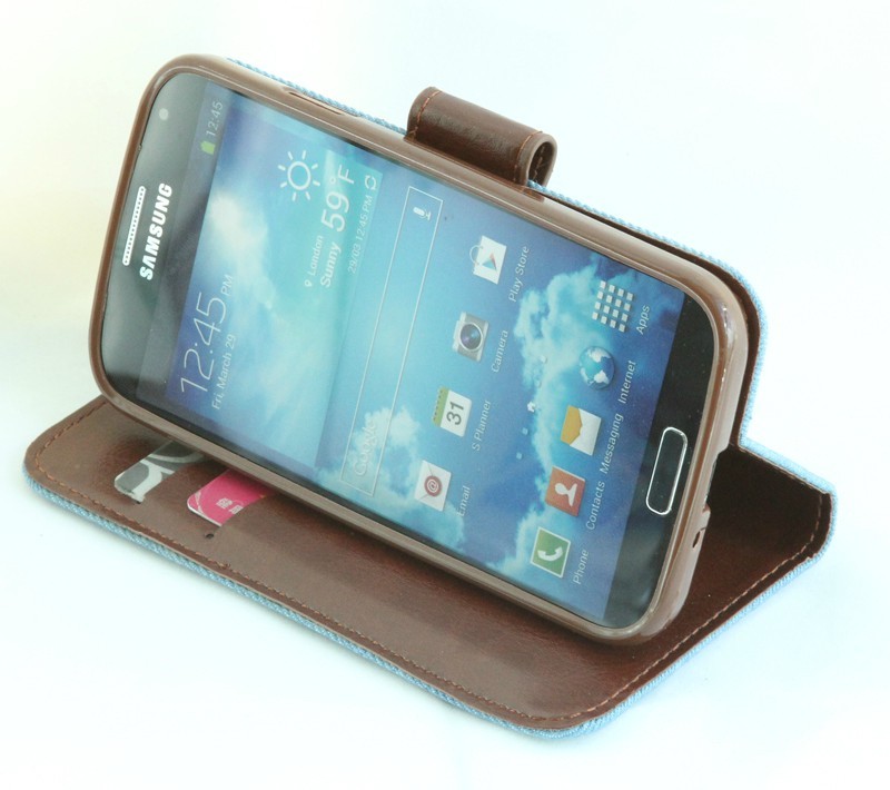 新款三星SAMSUNG Galaxy  S4/i9500 手機套 牛仔布皮套 Galaxy S3 / i9300 手機套 左右開翻帶支架可插卡錢包款 時尚潮流 保護套外殼