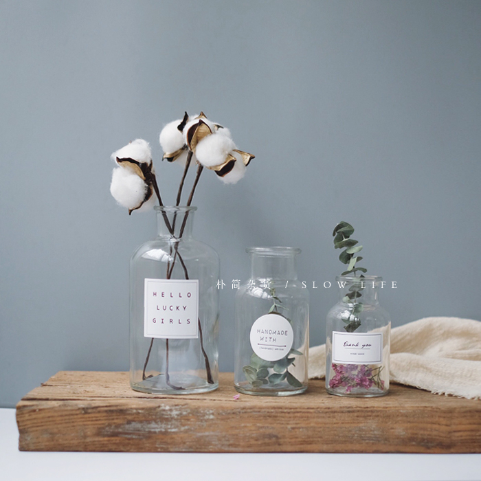 樸簡 北歐ins風簡約透明玻璃花器 家居客廳裝飾水培玻璃干花花瓶