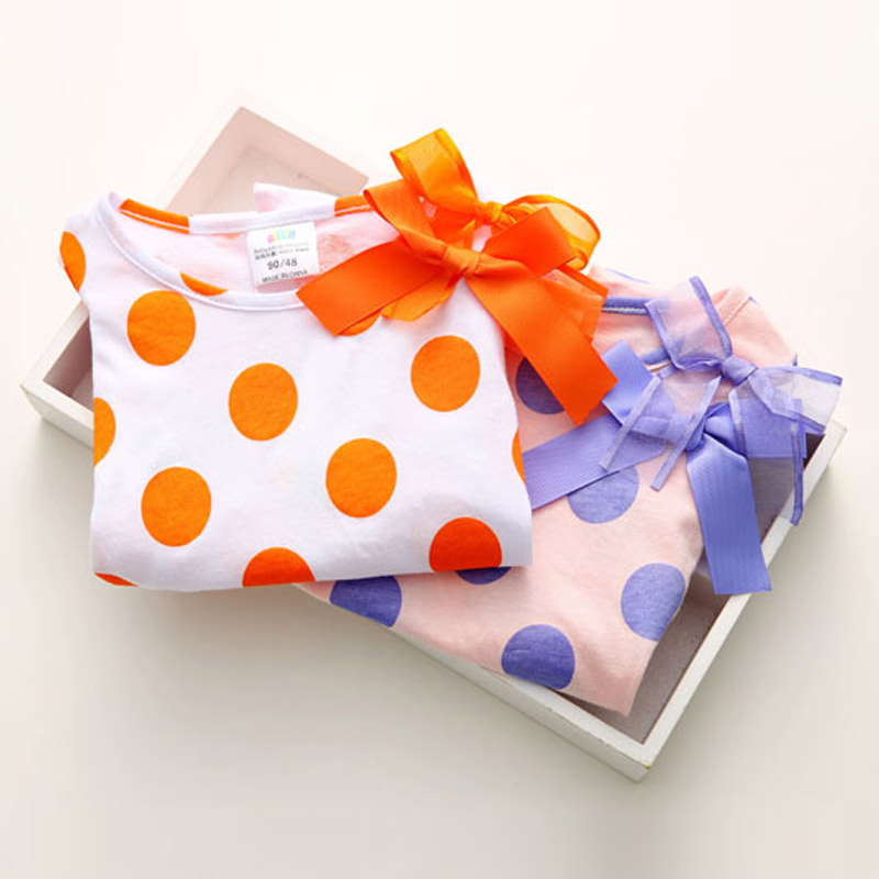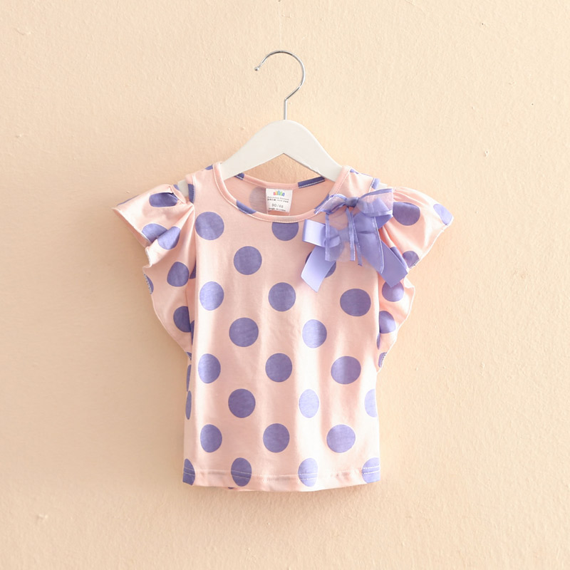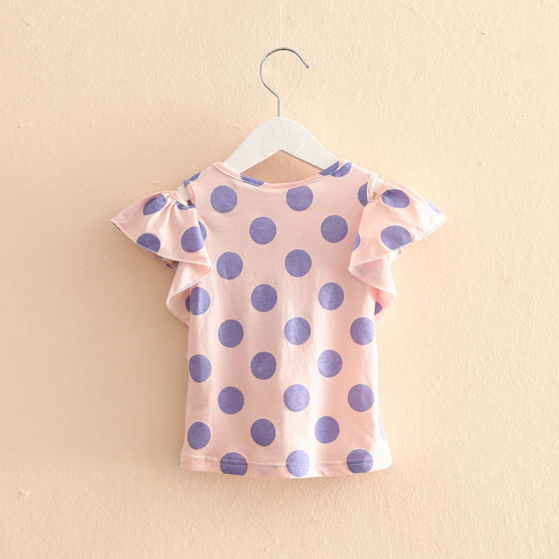 寶寶露肩T恤 夏裝新款韓版女童童裝兒童波點短袖上衣tx-6933