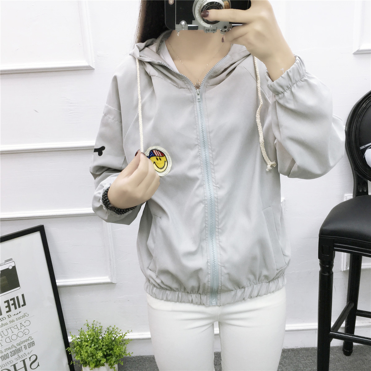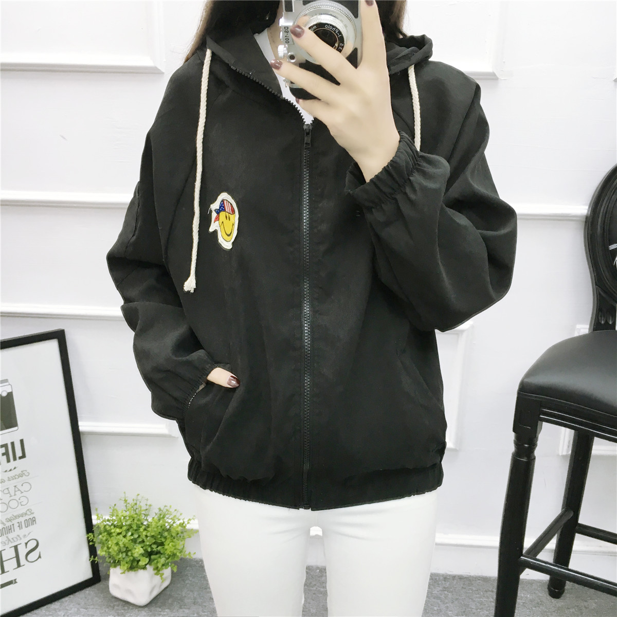 防曬衣女2017夏季新款韓版學生寬松bf笑臉刺繡百搭長袖短款薄外套