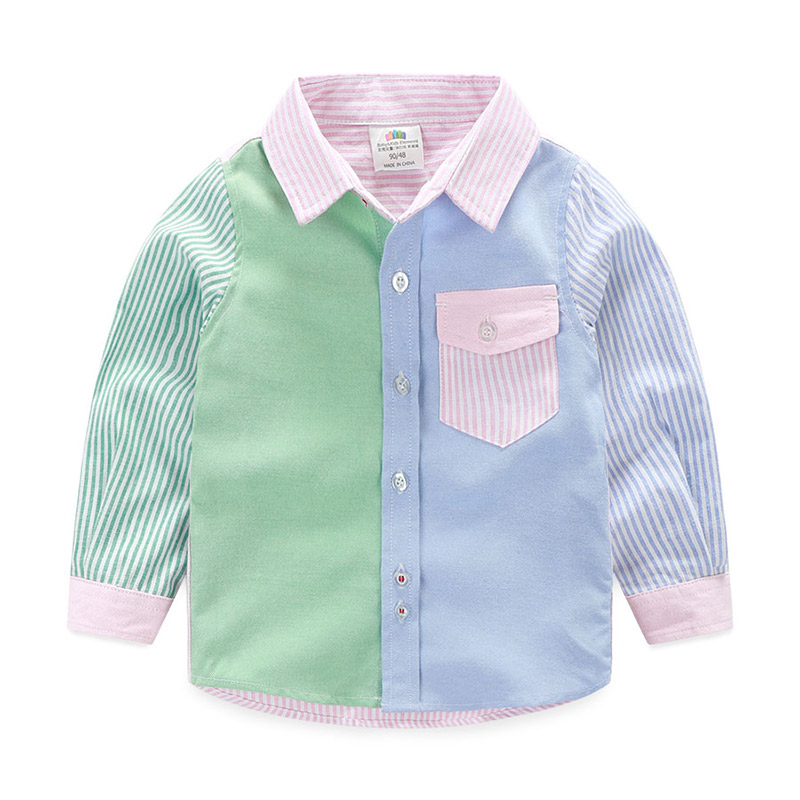 / 寶寶拼色襯衫 秋裝韓版新款童裝男童裝兒童條紋襯衣潮tx-6452