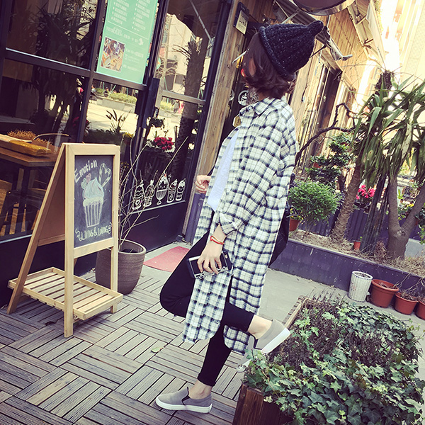 / 春秋韓版學院風寬松長袖復古格子襯衫女百搭學生休閑上衣襯衣潮