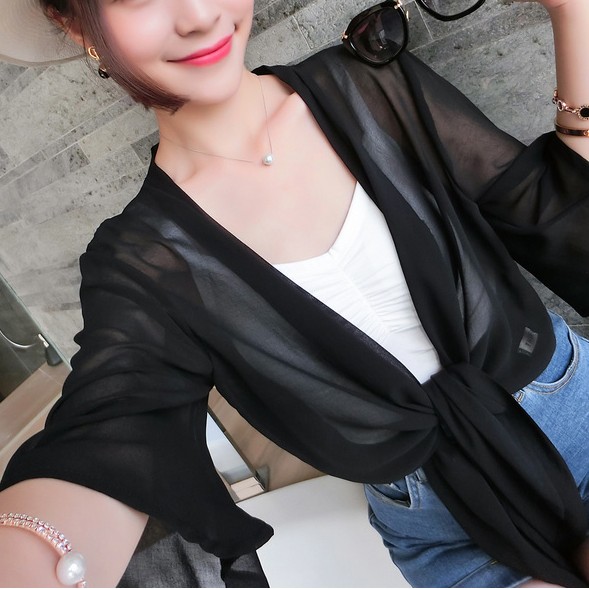 / 雪紡小披肩百搭坎肩女沙灘防曬衣夏季外搭薄款短袖短款開衫小外套