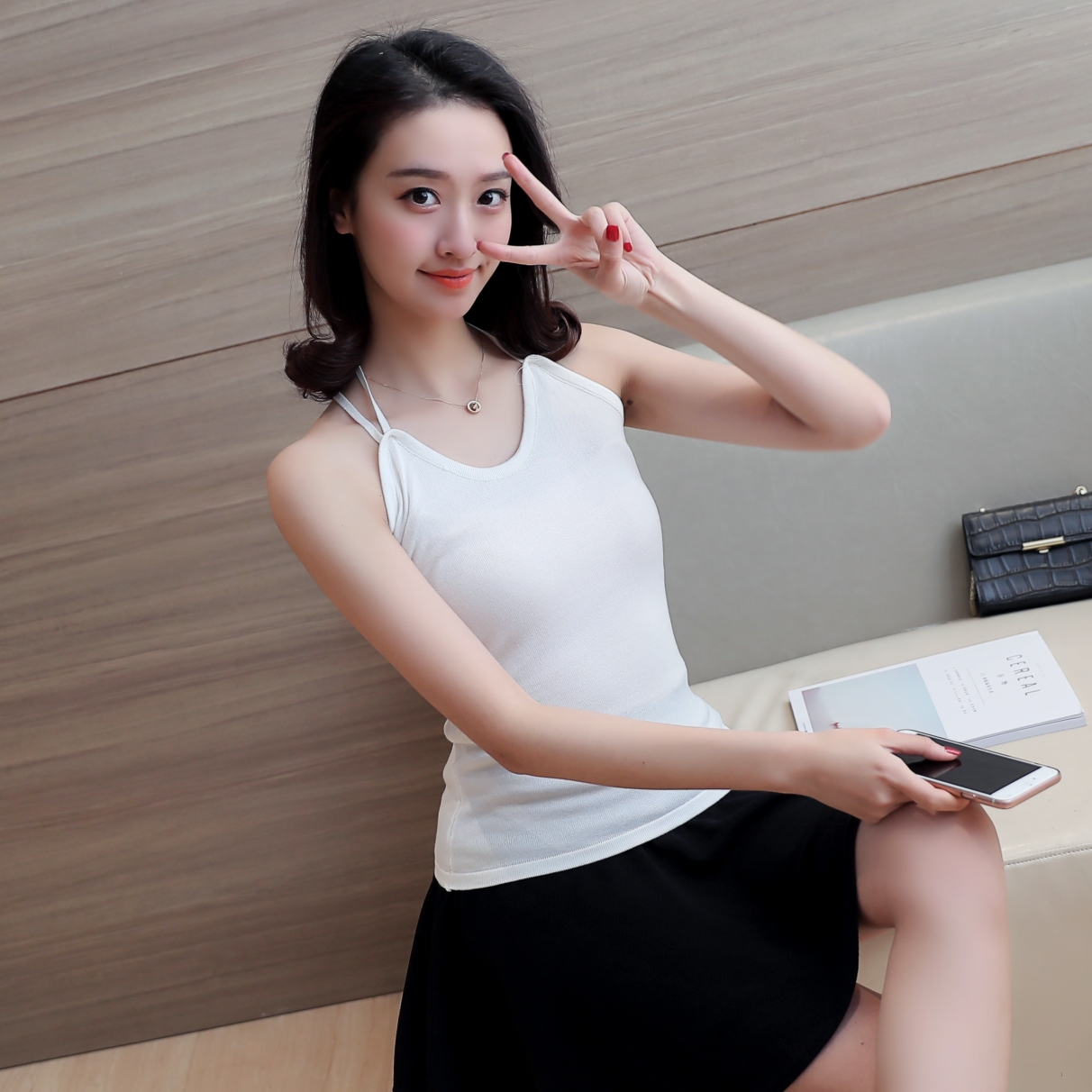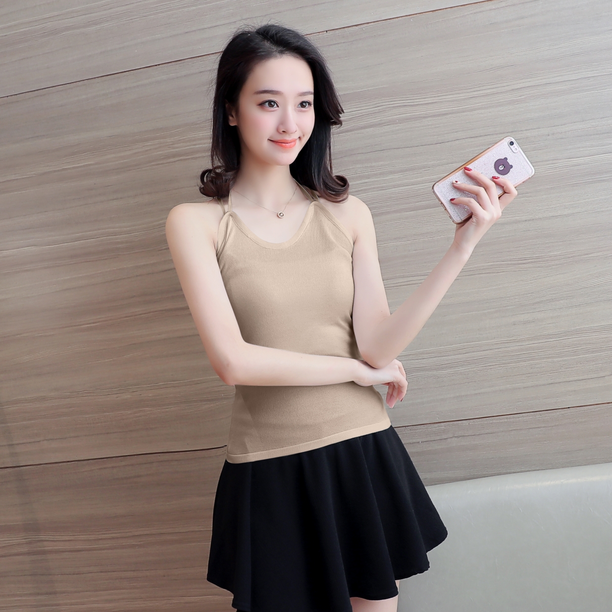 / 夏季韓版女裝新款百搭修身無袖打底衫內搭掛脖彈力針織吊帶背心女