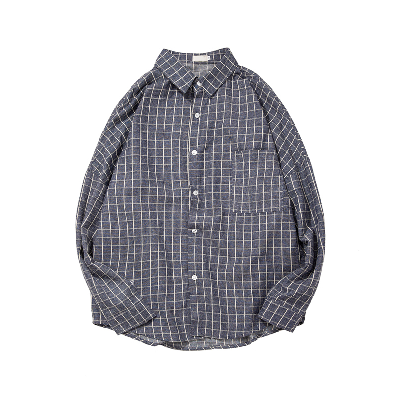 / 春裝新款韓版細格子休閑青年百搭男士長袖襯衫襯衣