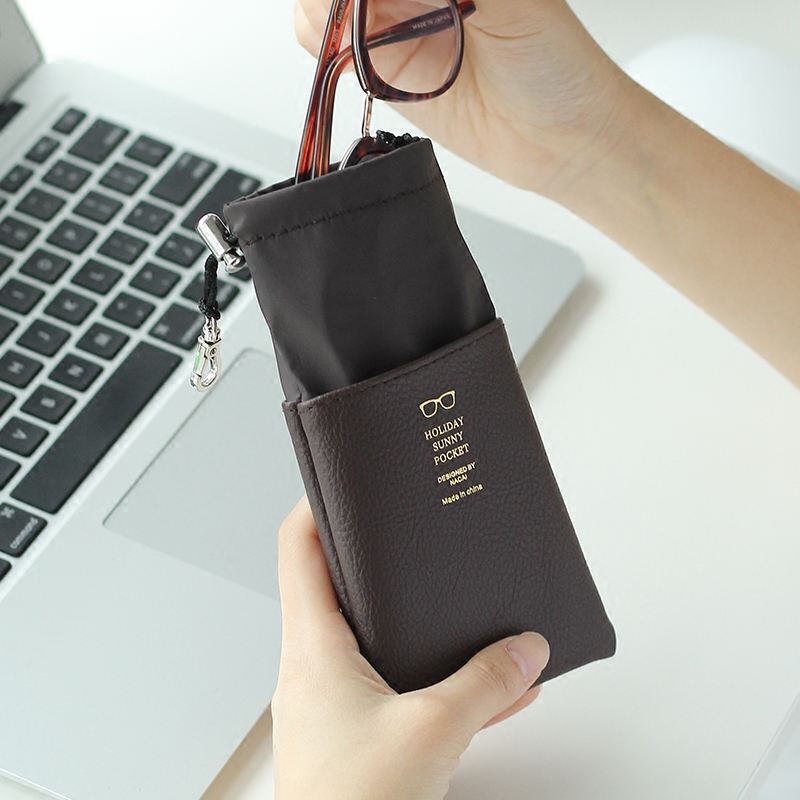 / 旅行便攜太陽眼鏡袋簡約束口收納袋皮面夾層鏡袋手機小物收納卡包