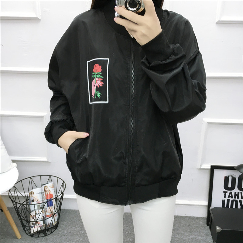 學院風春夏外套女韓版原宿bf風學生印花寬松百搭短款長袖棒球服潮