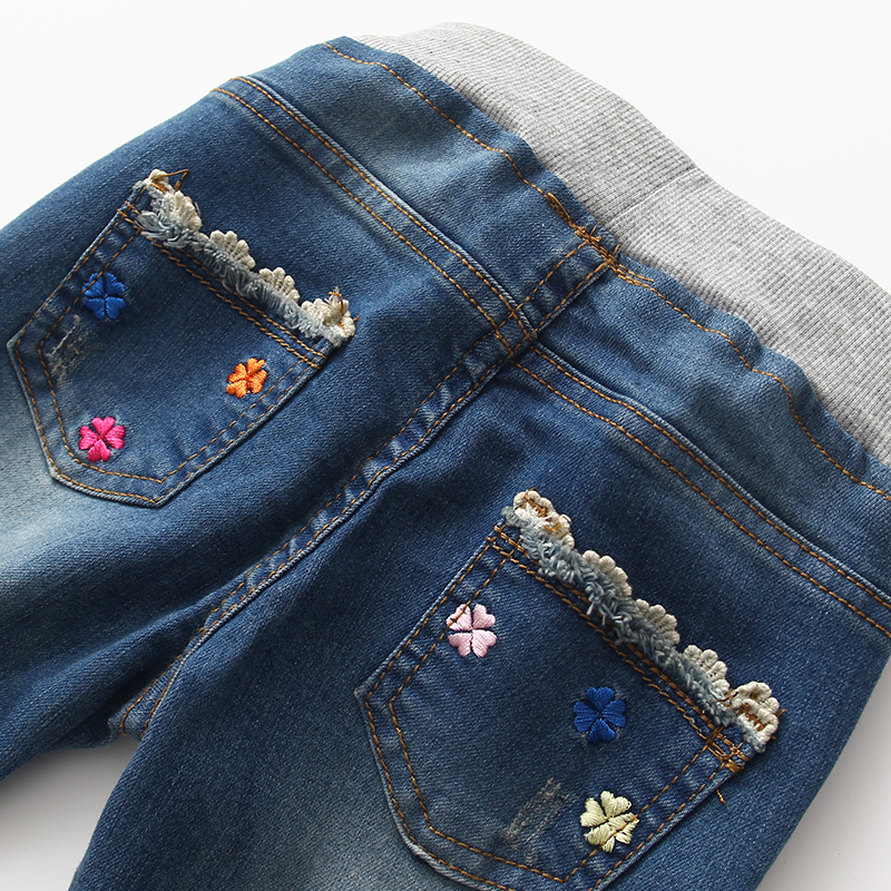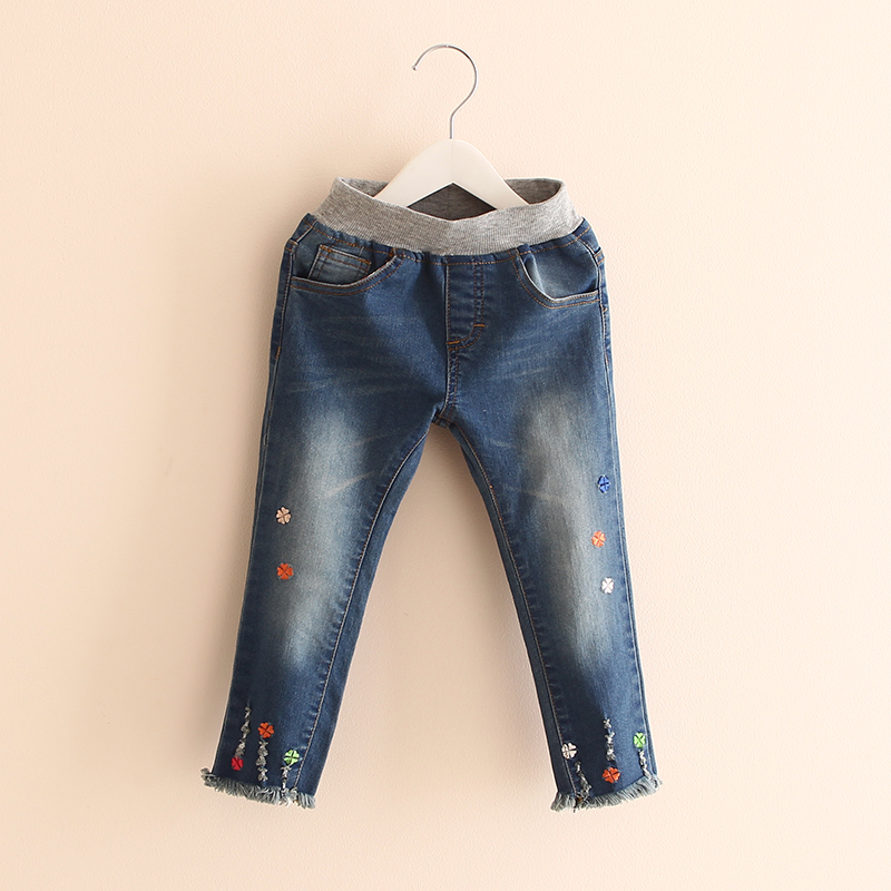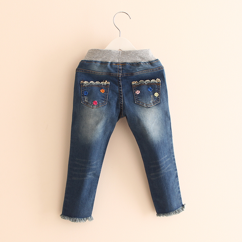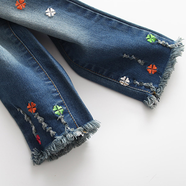 寶寶刺繡花朵牛仔褲 春裝韓版新款女童童裝兒童長褲子kz-7509