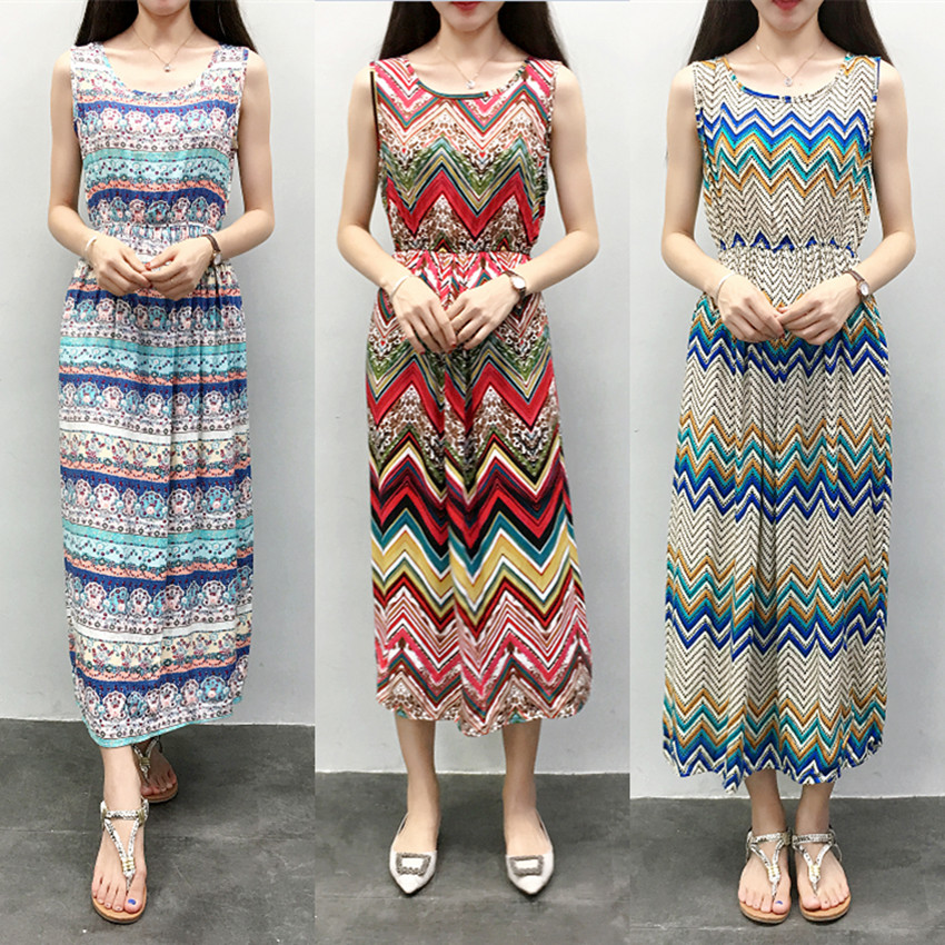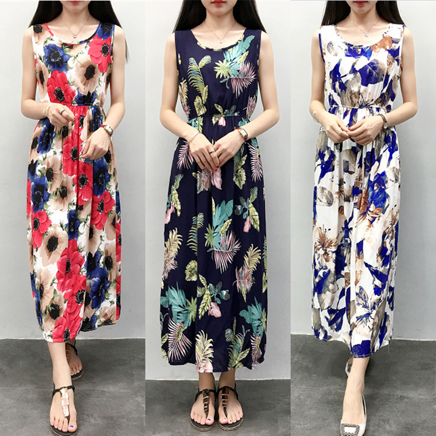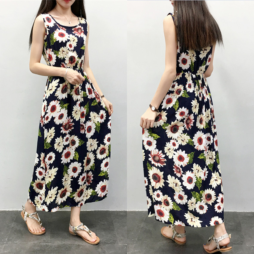 棉綢度假連衣裙長裙