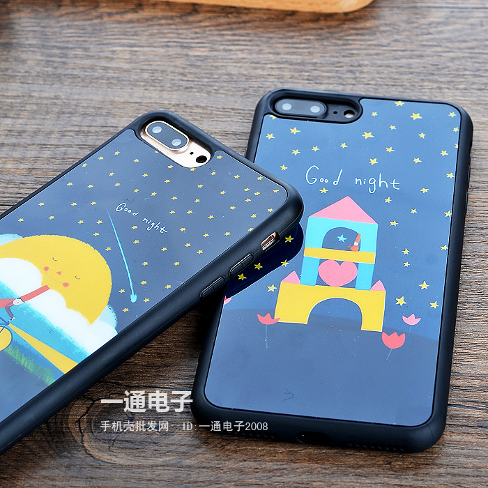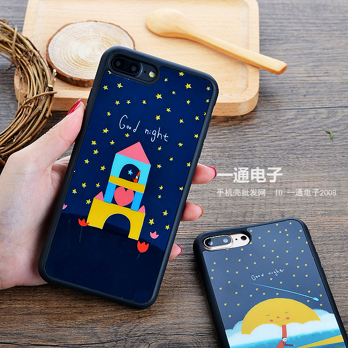 小清新晚安星空iPhone7手機殼i6文藝全包硅膠掛繩蘋果7plus保護套