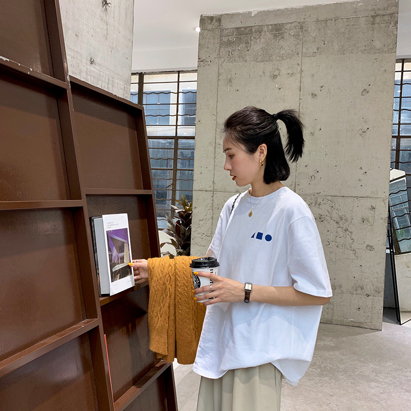 A7seven短袖T恤女2019春夏新款印花純棉白色韓版圓領寬松顯瘦上衣