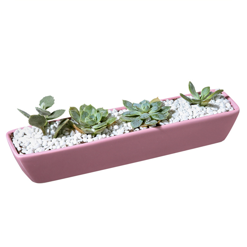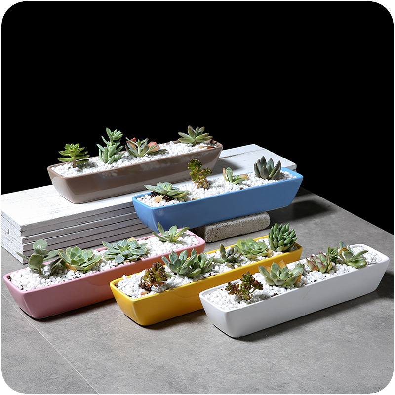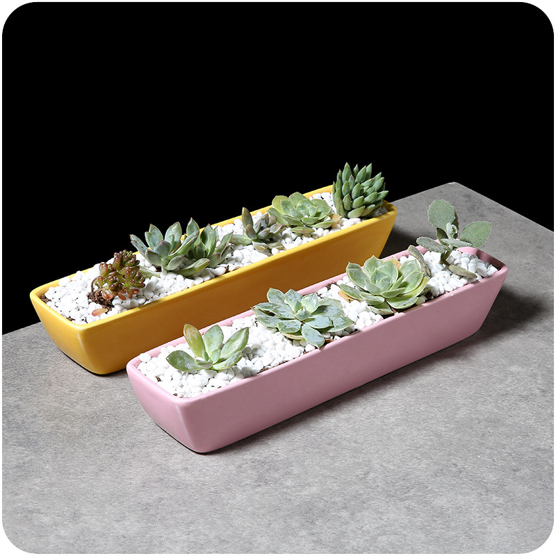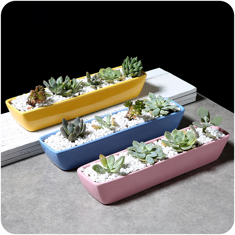 / 創意多肉植物陶瓷花盆簡約扁船形長方體糖果色花卉花盆純色花器美