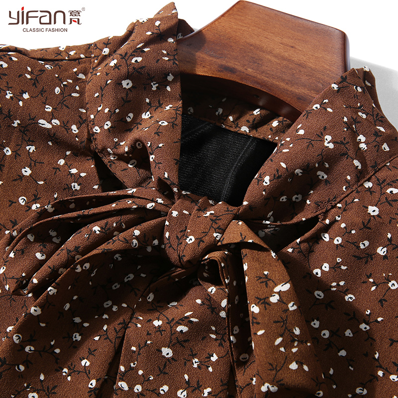春夏碎花連衣裙女裝新款韓版蝴蝶結長袖寬松荷葉邊喇叭袖雪紡長裙