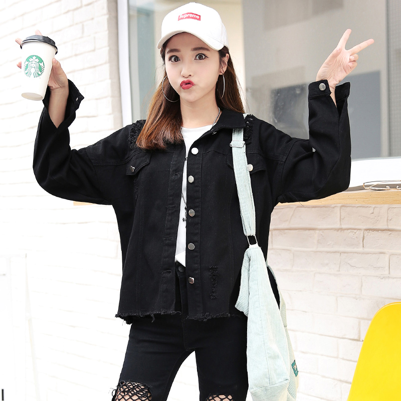 原宿BF寬松牛仔外套女2017秋裝新款學生休閑復古破洞牛仔上衣潮