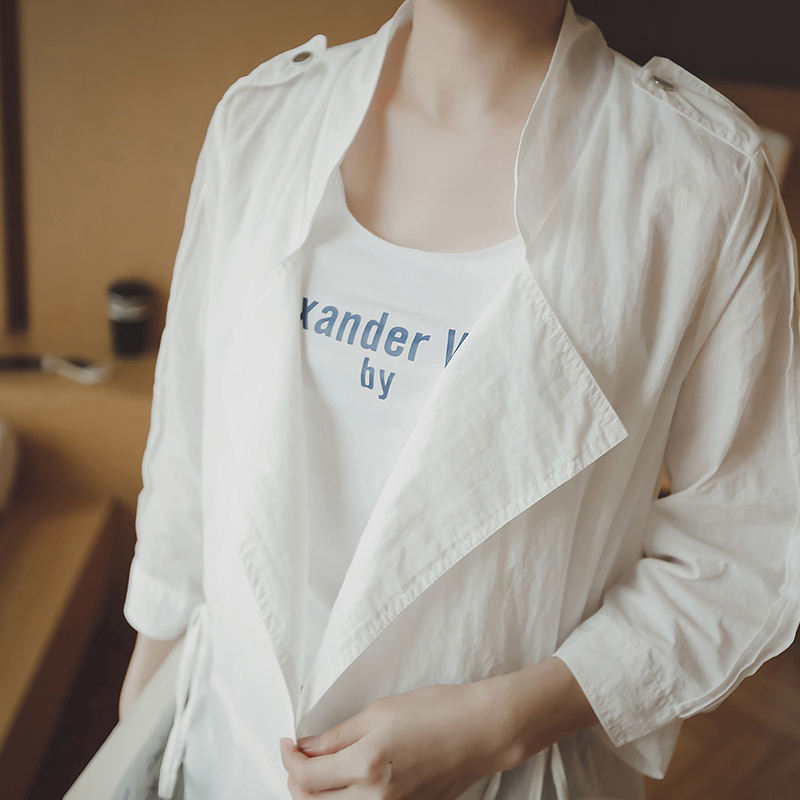 / 夏季新款韓版收腰雪紡披肩開衫中長款風衣薄外套大碼寬松防曬衣女