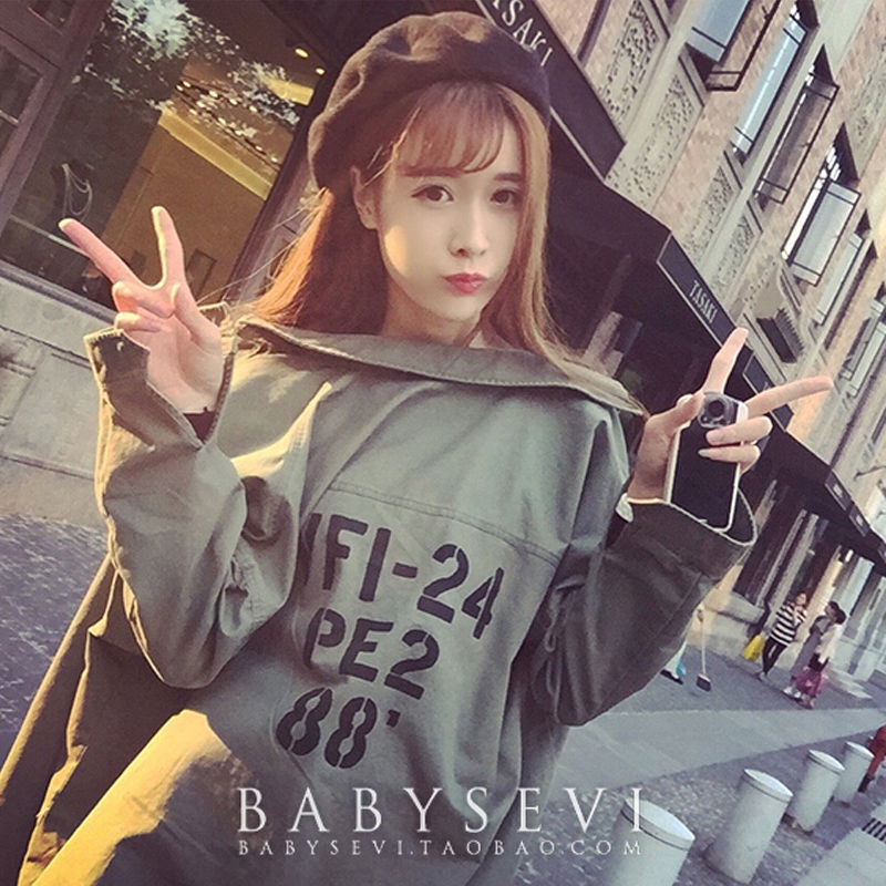 / 2017春裝新款韓版軍綠色字母印花寬松顯瘦薄款秋季外套女開衫上衣