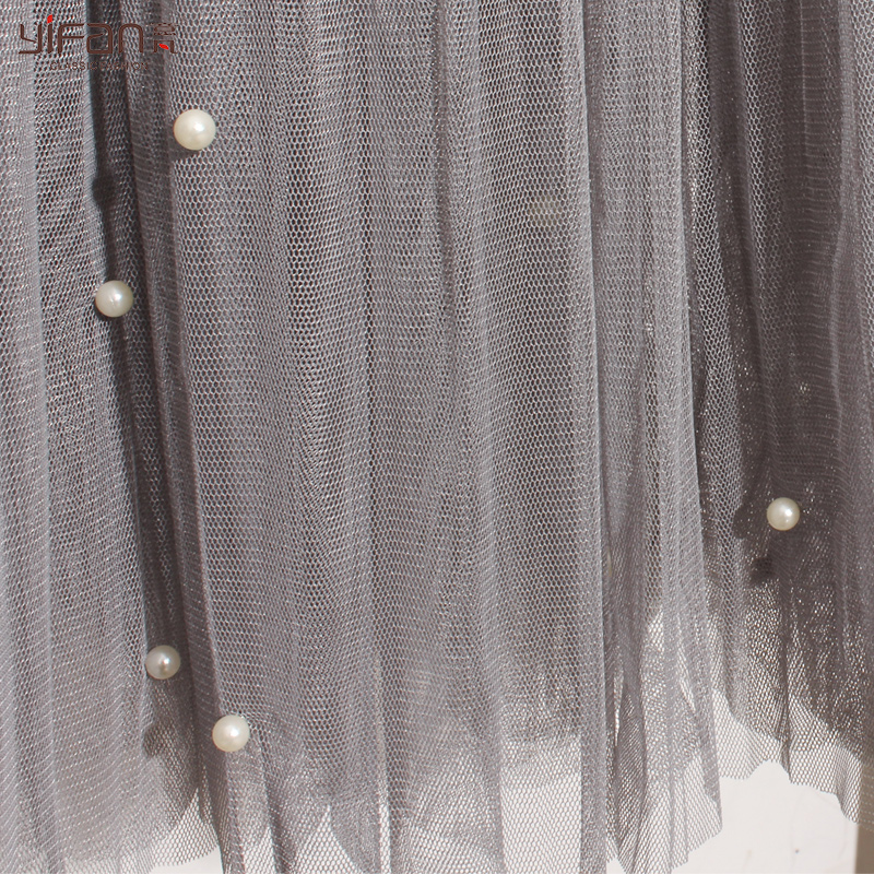 春夏女裝清新松緊腰寬松釘珠紗網中裙純色大裙擺半身裙