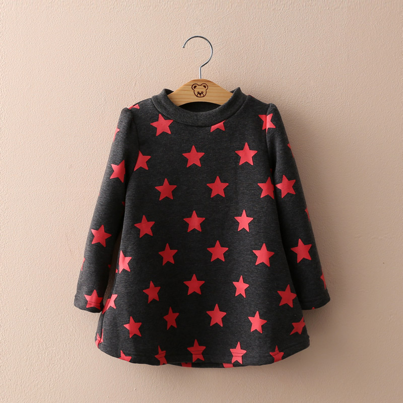 寶寶星星加絨裙衫 冬裝新款童裝女童裝加厚打底衫tx-6255