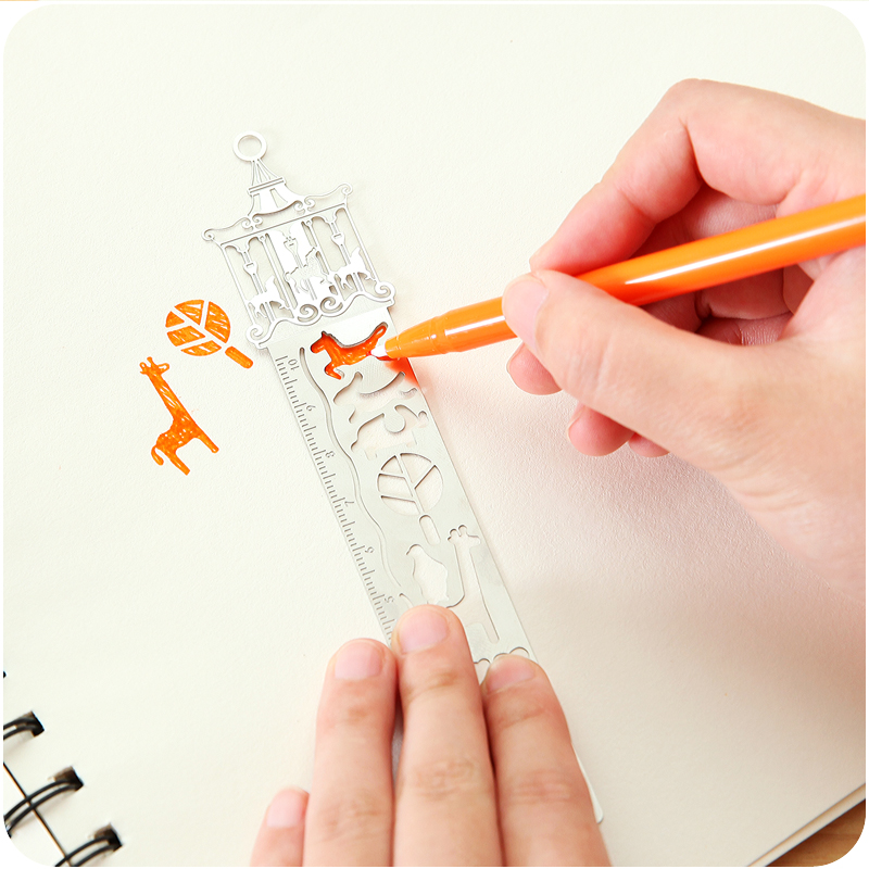 / 辦公學習創意文具鏤空繪畫標尺金屬書簽多功能直尺書夾尺子不銹鋼
