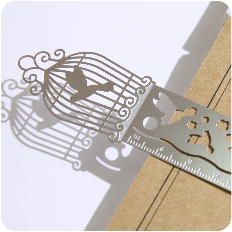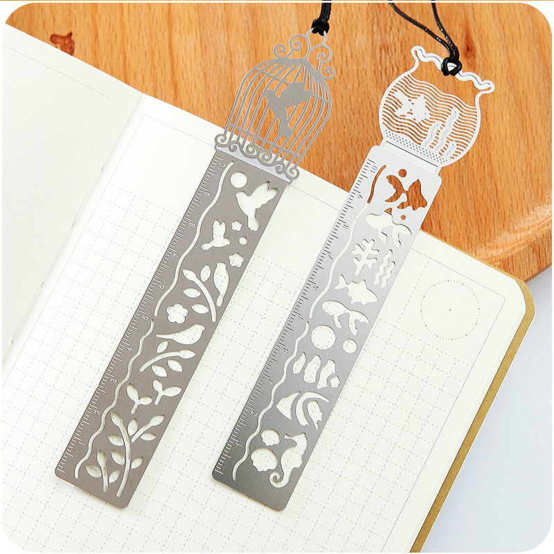辦公學習創意文具鏤空繪畫標尺金屬書簽多功能直尺書夾尺子不銹鋼