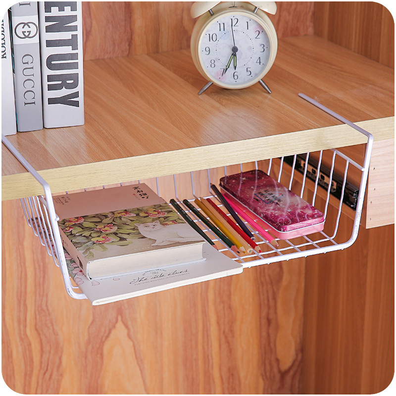 / 廚房櫥柜隔板下掛籃衣柜收納架宿舍辦公桌掛架鐵藝支架整理置物架