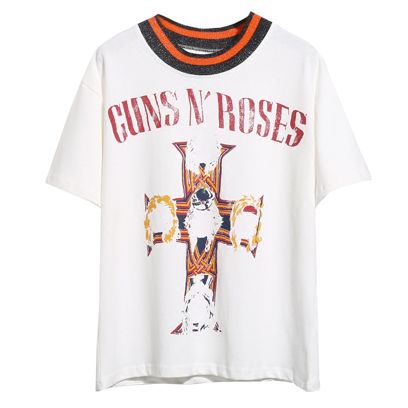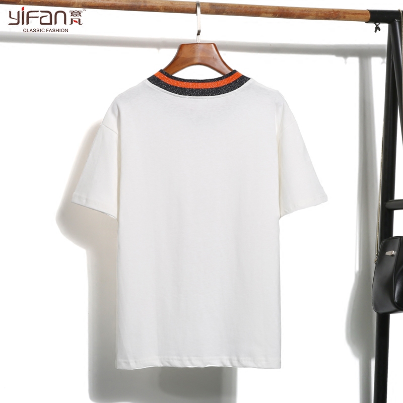 / 夏季新款韓版短袖T恤女寬松針織領字母卡通印花純棉學生體恤