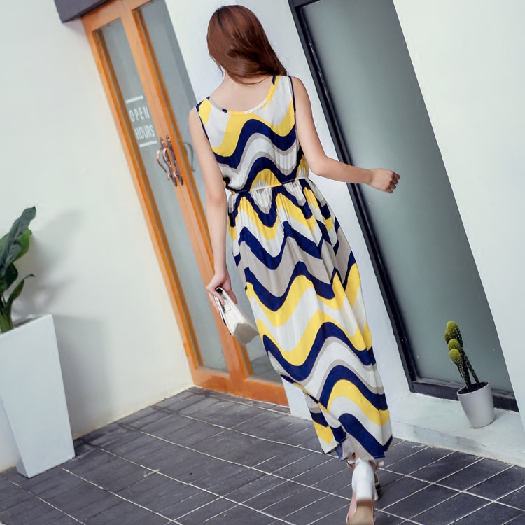 加大碼波西米亞連衣裙 海邊渡假沙灘裙綿綢胖mm大擺棉綢背心裙