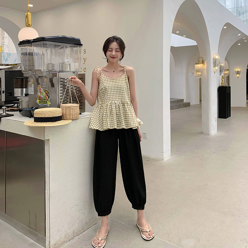 A7seven格子系帶吊帶女夏季短款內穿外搭黑色韓版露背性感小背心