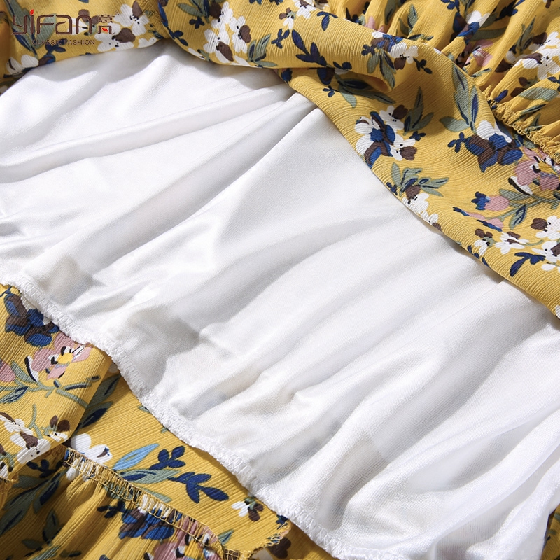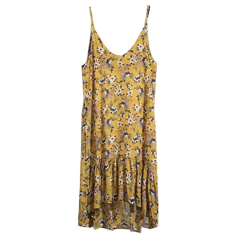 / 韓版夏季連衣裙女v領時尚寬松顯瘦中長款荷葉邊雪紡吊帶長裙