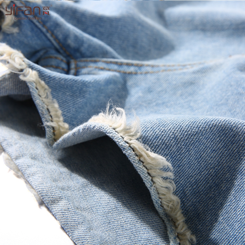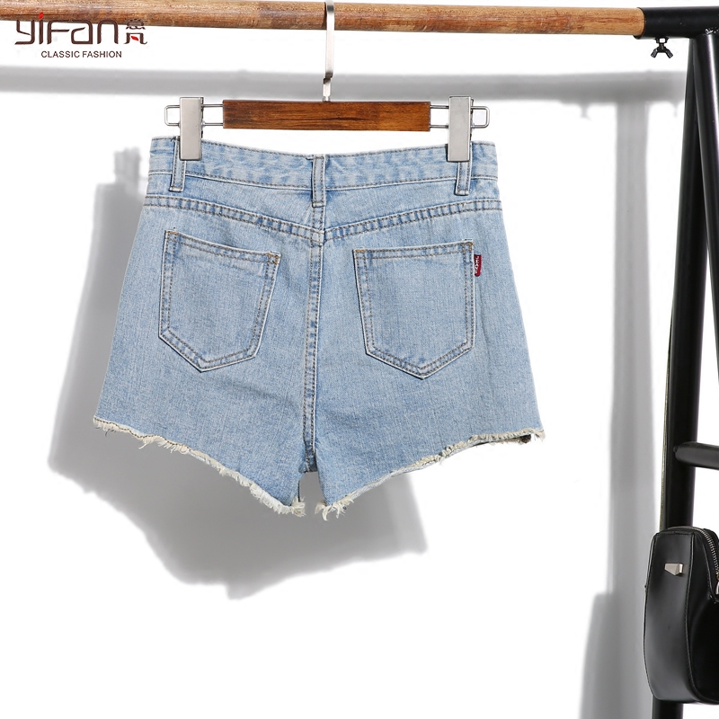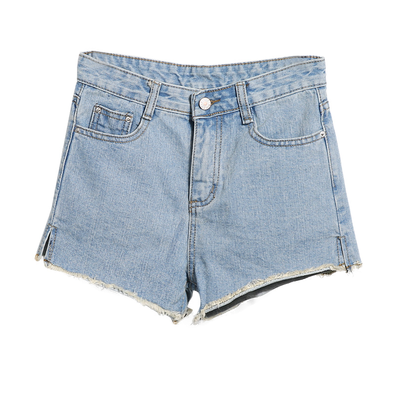 / 夏季休閑百搭牛仔短褲女高腰寬松學生破洞毛邊闊腿褲彈力顯瘦熱褲