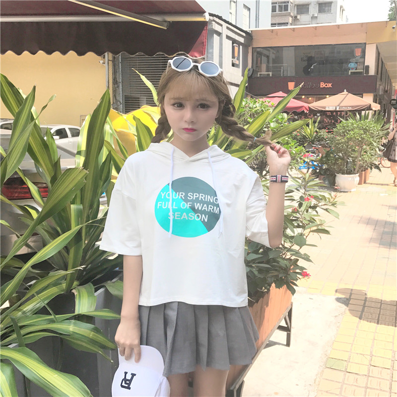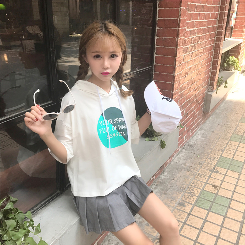 / 夏季連帽短袖t恤女原宿風bf韓版潮學生寬松中 半袖百搭帶帽衫衛衣