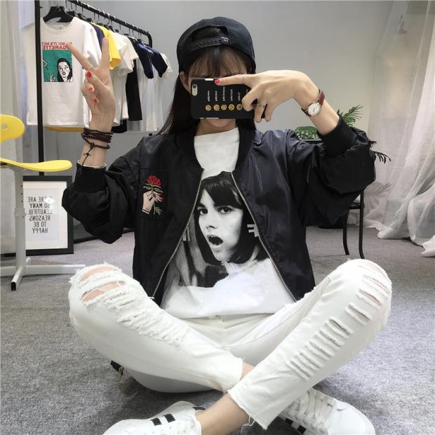 外套女春裝2017新款潮韓版寬松休閑時尚短款連帽上衣刺繡棒球服女