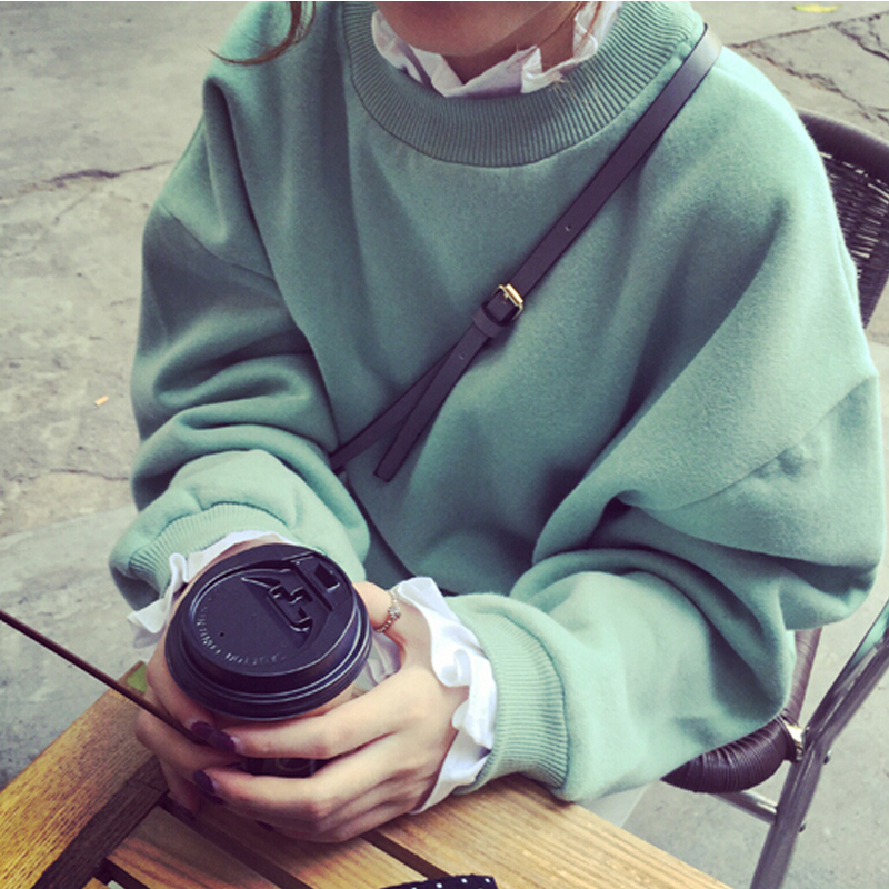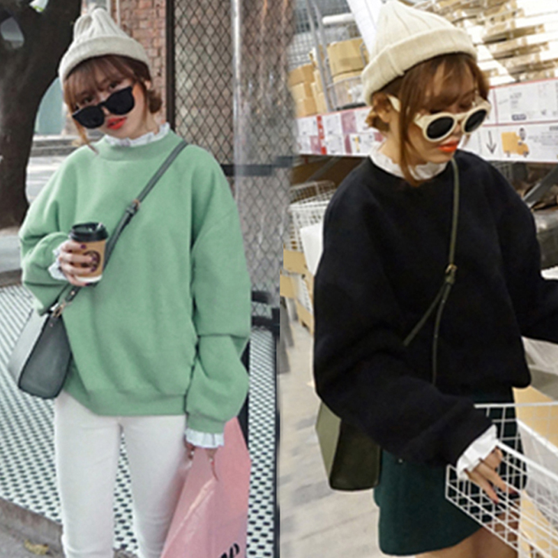 衛衣女套頭秋冬裝韓版寬松花瓣領拼接純色T恤女學生長袖外套上衣