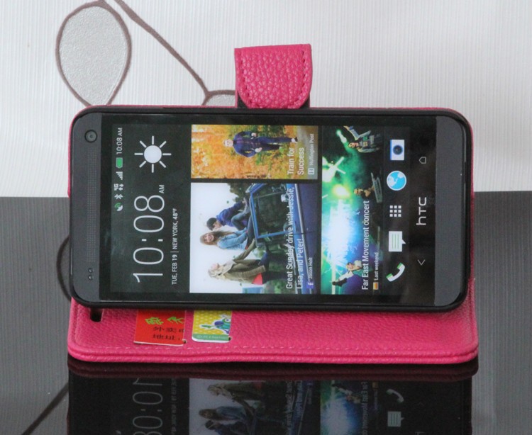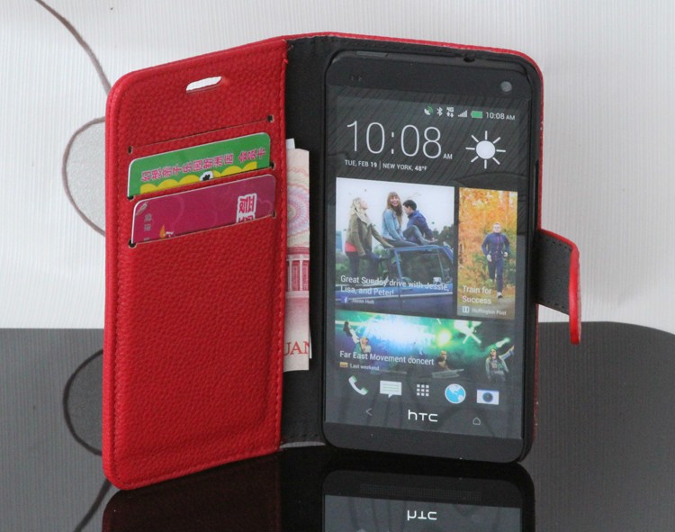 HTC One/M7皮套 荔枝紋保護套 支架插卡錢包左右開翻手機套外殼