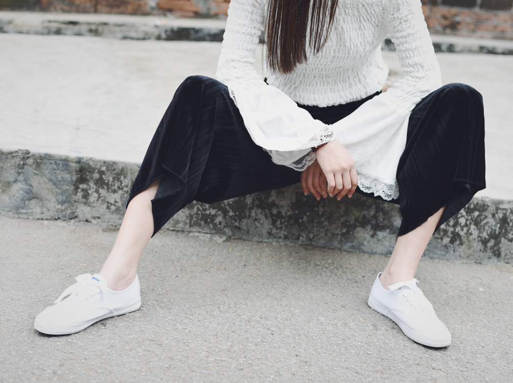 / 春秋女裝2017新款韓版百褶絲絨松緊腰闊腿褲九分寬松休閑褲直筒褲