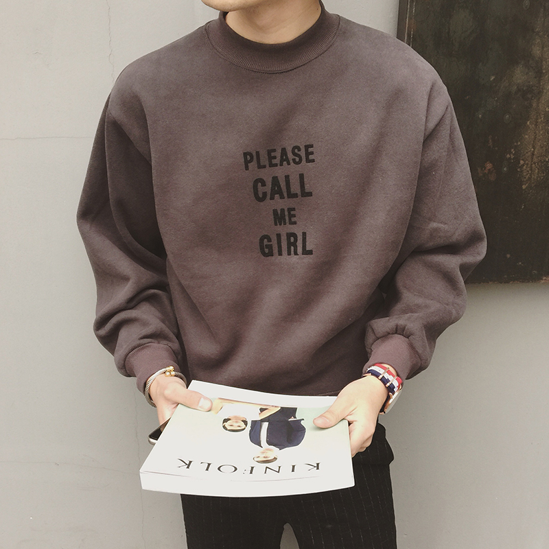 原創設計韓版新款字母印花圓領寬松版男士套頭衛衣