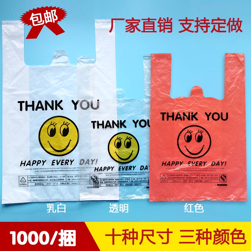 / 加厚透明笑臉背心袋塑料袋大中小號購物食品方便袋子定做logo批發