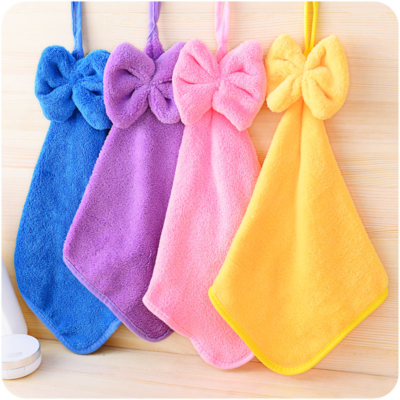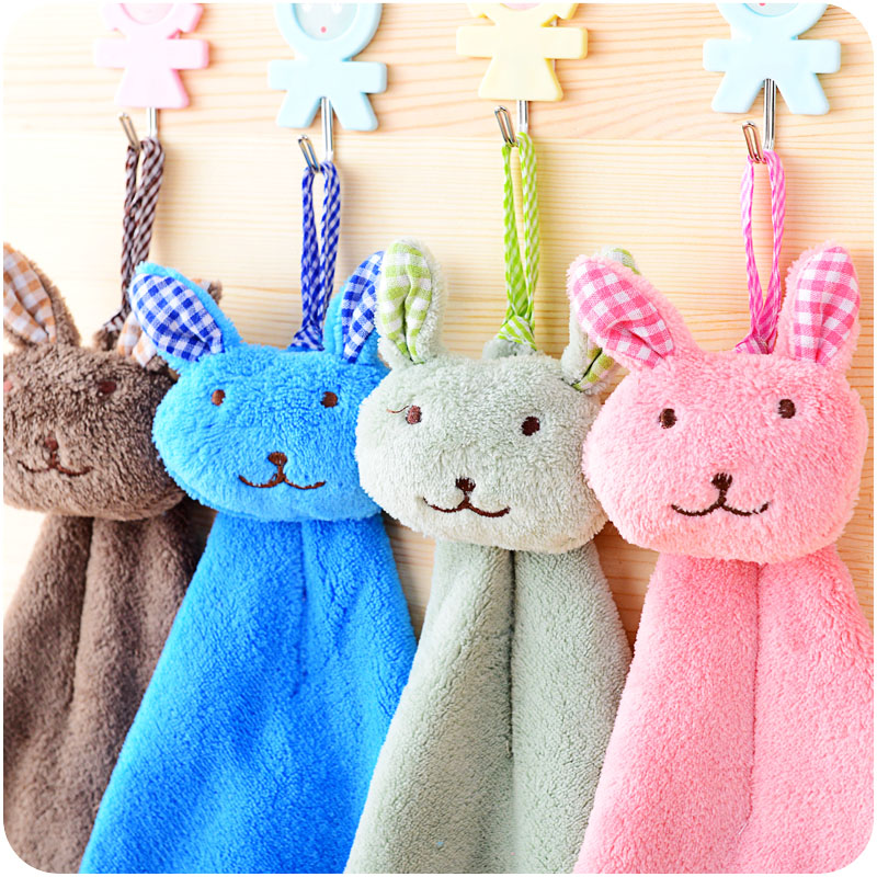 可愛兔子小方巾廚房浴室掛式擦手巾珊瑚絨笑臉擦手巾兒童寶寶毛巾